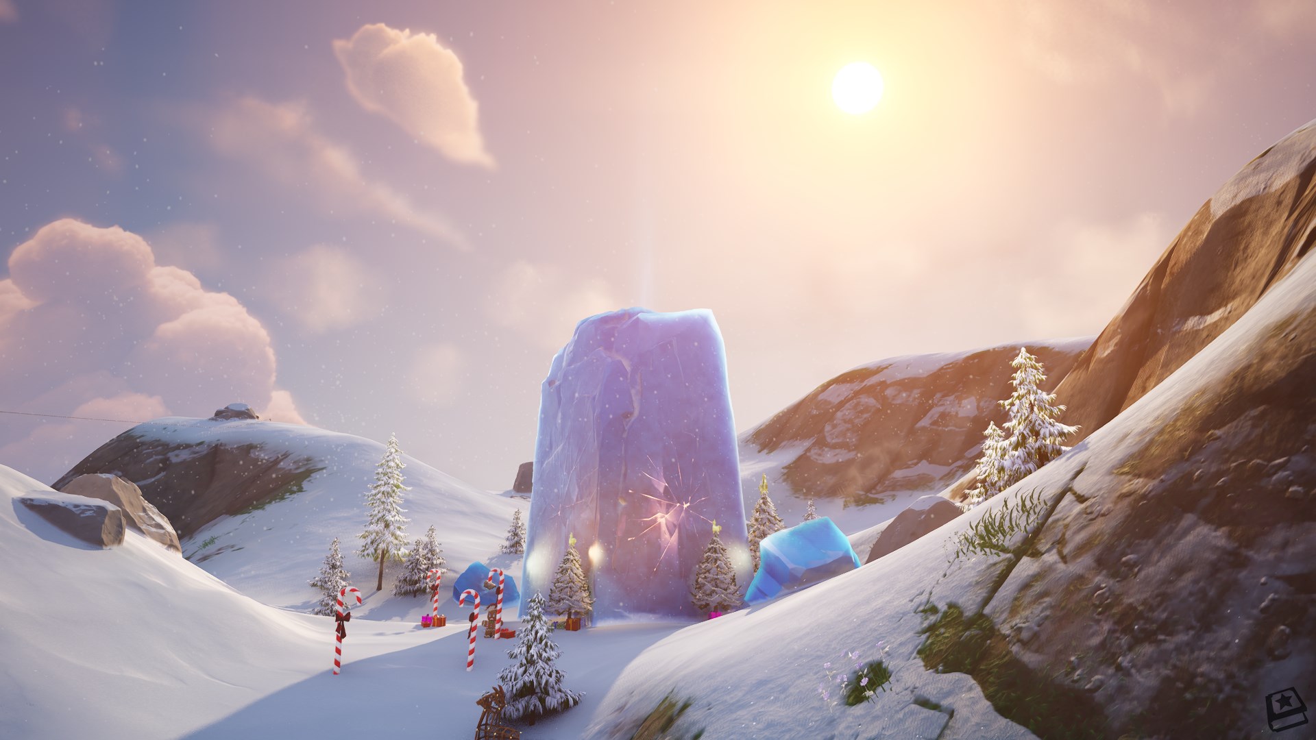 Un bloc de glace énorme est apparu au milieu de la carte, on ne sait pas encore, mais il se pourrait qu’il laisse apparaitre au fil des jours Mariah Carey. Un nouvel écran de chargement sur le thème de Noël est également ajouté dans la mise à jour. Des objets comme les patins à glace et la grenade Blizzard seront également disponibles dans le Battle Royal.