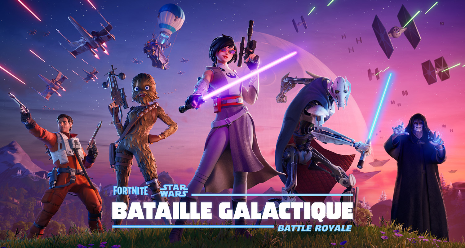 Les Destroyers Stellaires impériaux sortent de l’hyperespace et se mettent en orbite autour de l’Étoile de la Mort. La lune artificielle pointe le canon de son arme sur la carte de Battle royale. Le destin de l’île est en jeu ! Mais des héros de toutes les époques sont prêts à riposter à l’assaut lancé dans l’ombre par l’Empereur Palpatine. Dégainez votre sabre laser et préparez votre blaster dans Fortnite : Bataille galactique !