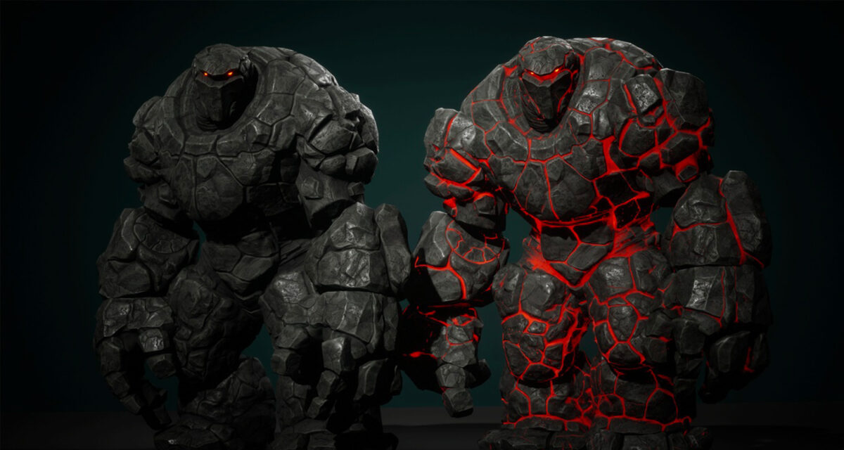 Ce pack de golem en pierre est un ensemble de personnages aux couleurs personnalisables. Il est parfait pour incarner un boss de niveau, il mesure 3,2 mètres de hauteur. Les proportions des bras et des jambes ont été modifiées et les animations ne sont pas incluses dans les ressources. Les options de matériaux disponibles sont : la pierre simple , avec de la neige ou de la lave à travers le matériau.