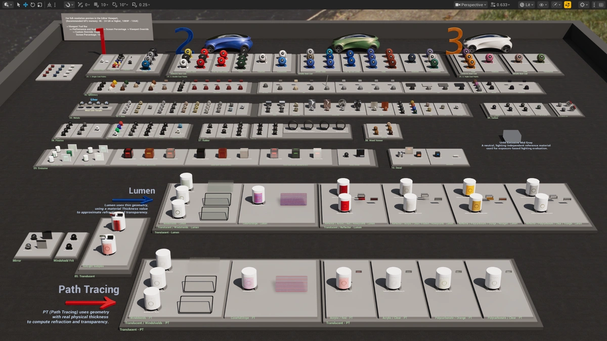 Entièrement créé avec Substrate, le système de matériaux nouvelle génération de l’Unreal Engine, ce pack propose une base de matériaux réalistes et prêts pour la production en visualisation automobile. Il offre des résultats cohérents sur les flux de travail Lumen et path tracing.
