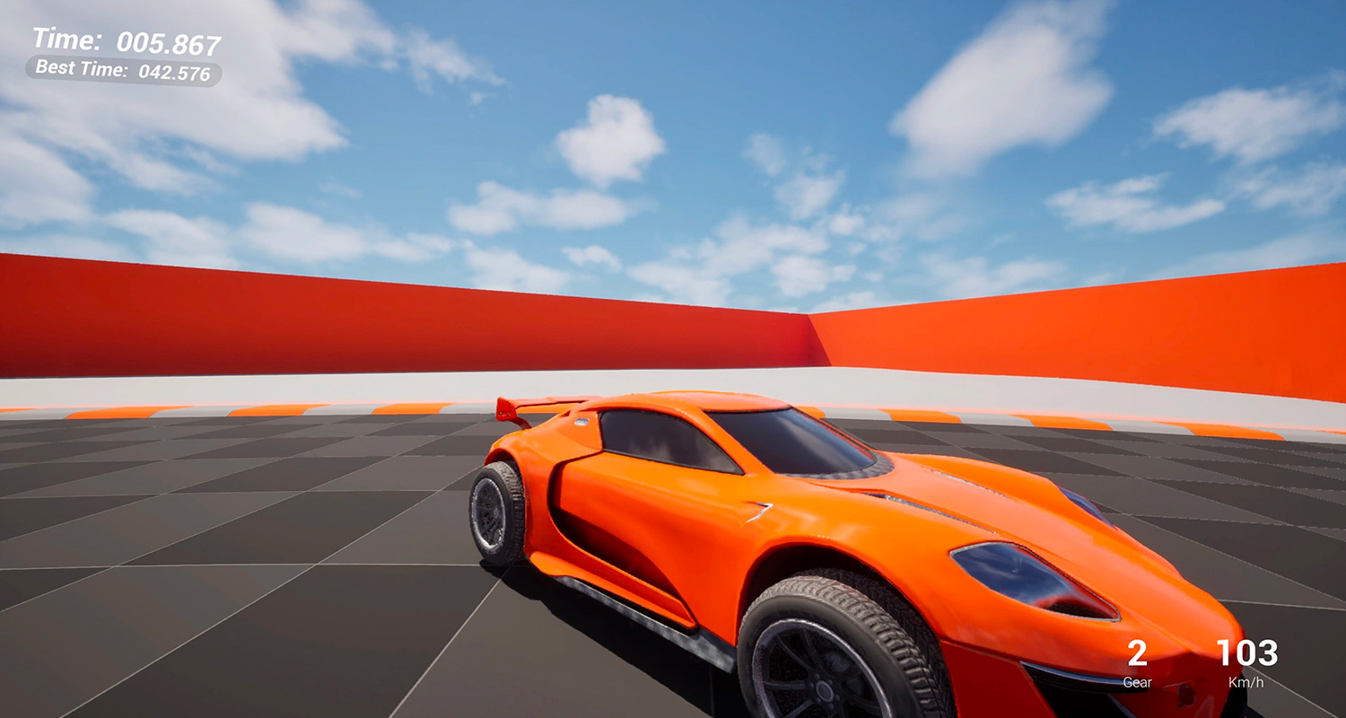 La variante Contre-la-montre permet de créer des expériences de course chronométrées plus rapidement grâce à des systèmes de chronométrage par tour, à une logique de points de contrôle et à des éléments d’IU spécifiques.